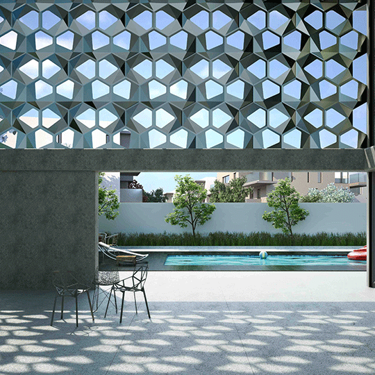 The “Radia” is all about ‘Balance’. The balance between retaining the aperture, to augment the applied space with light and ventilation, and attaining the intricate angular surface, to provide a delightful environment filled with an nice tone of luminescence and aesthetic brilliance.
